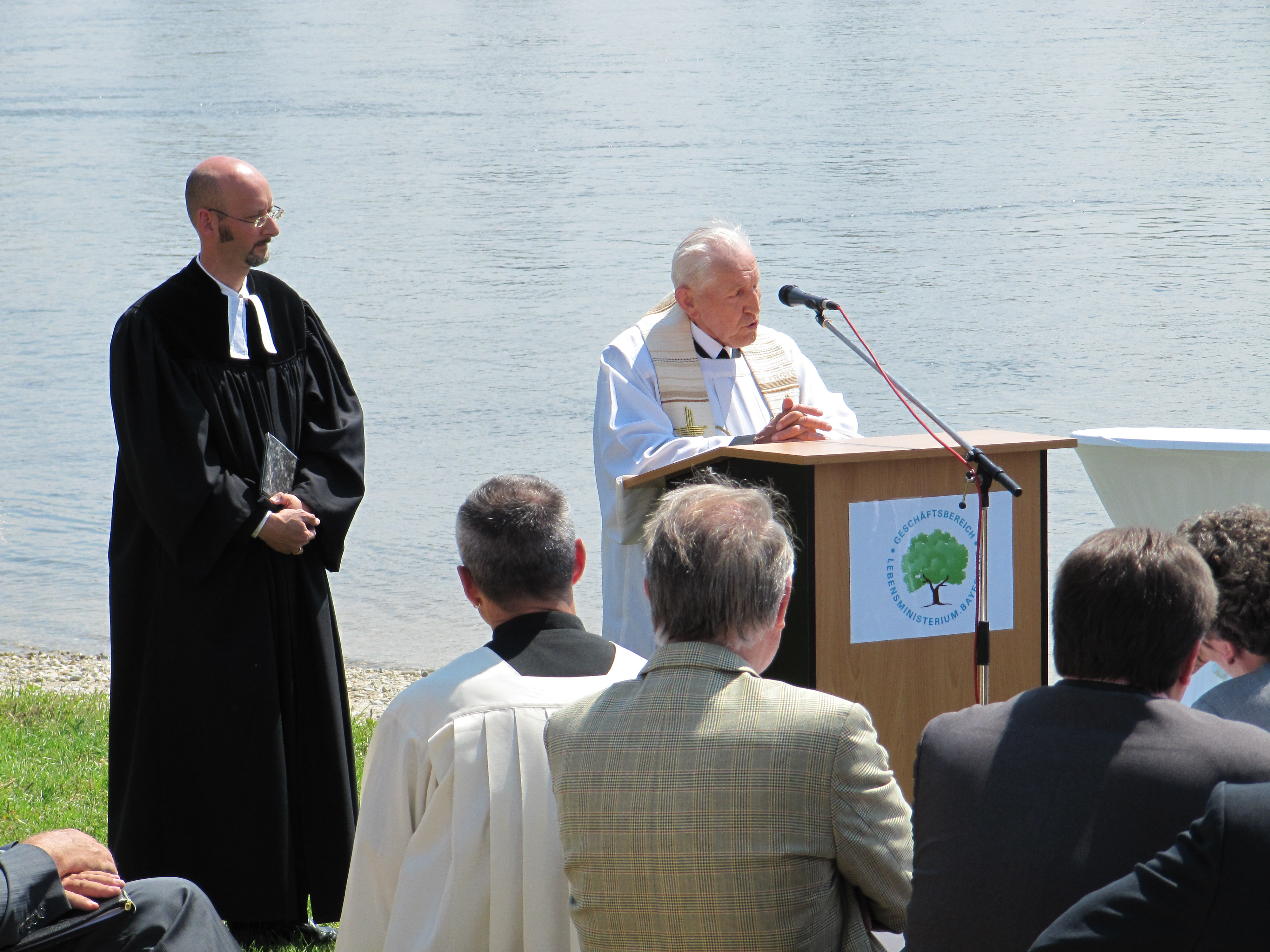 Den kirchlichen Segen erhielt der neue Hochwasser- >br />schutz in Schwabelweis mit politprominenter Unterstützung.