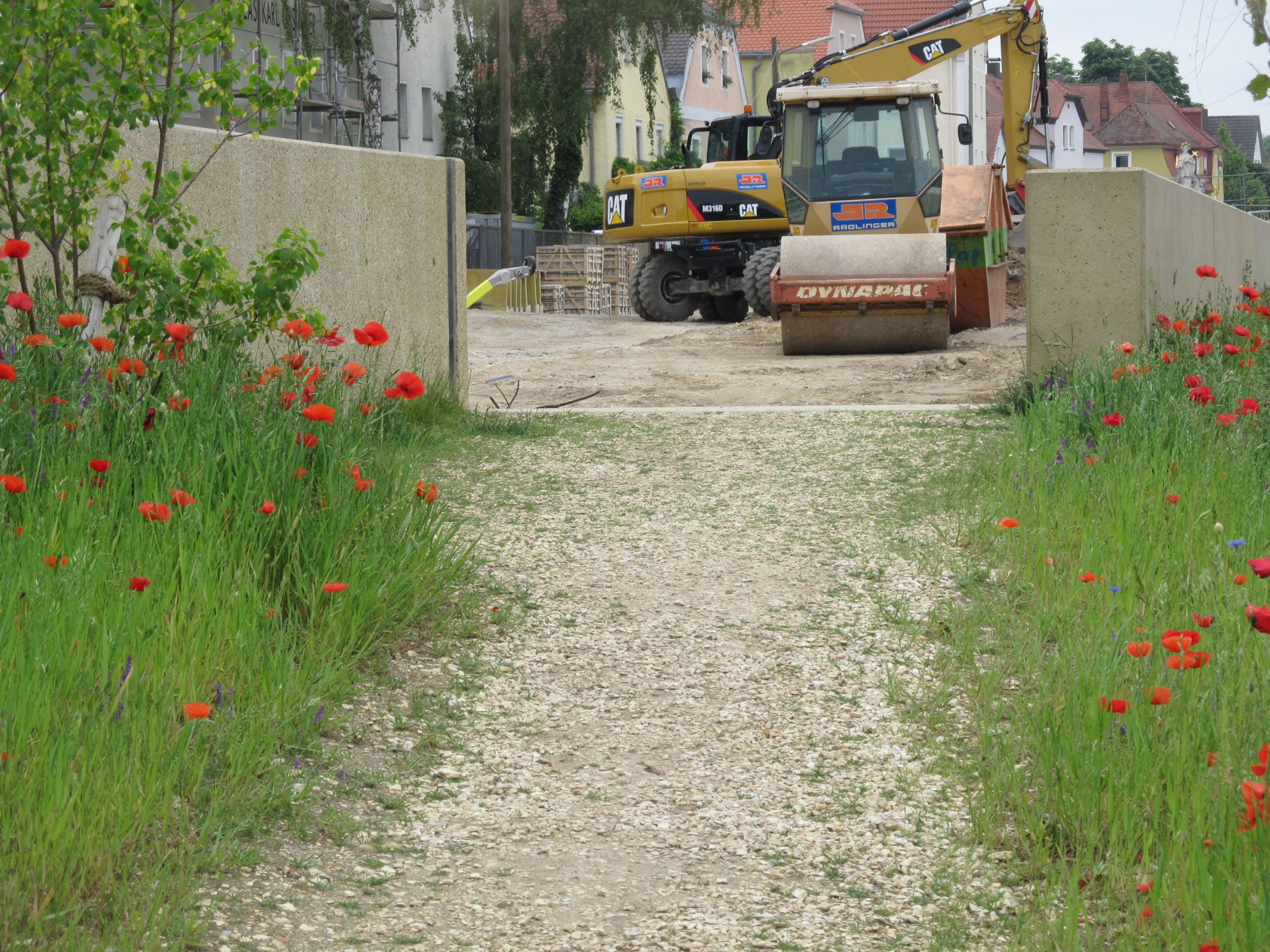 Bei all diesen Vergnügungsmöglichkeiten darf der ernste Grund für diese Uferumgestaltung nicht unerwähnt bleiben: Immerhin kam es dazu, weil der Hochwasserschutz in Reinhausen verbessert werden musste.